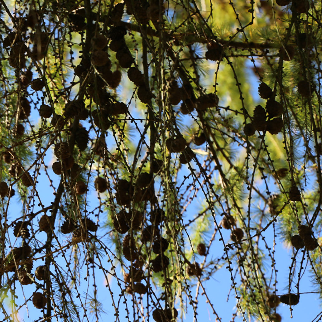 The only deciduous conifer, it’s needles turn gold before dropping, revealing a curtain of small pine cones silhouetted against the sky.