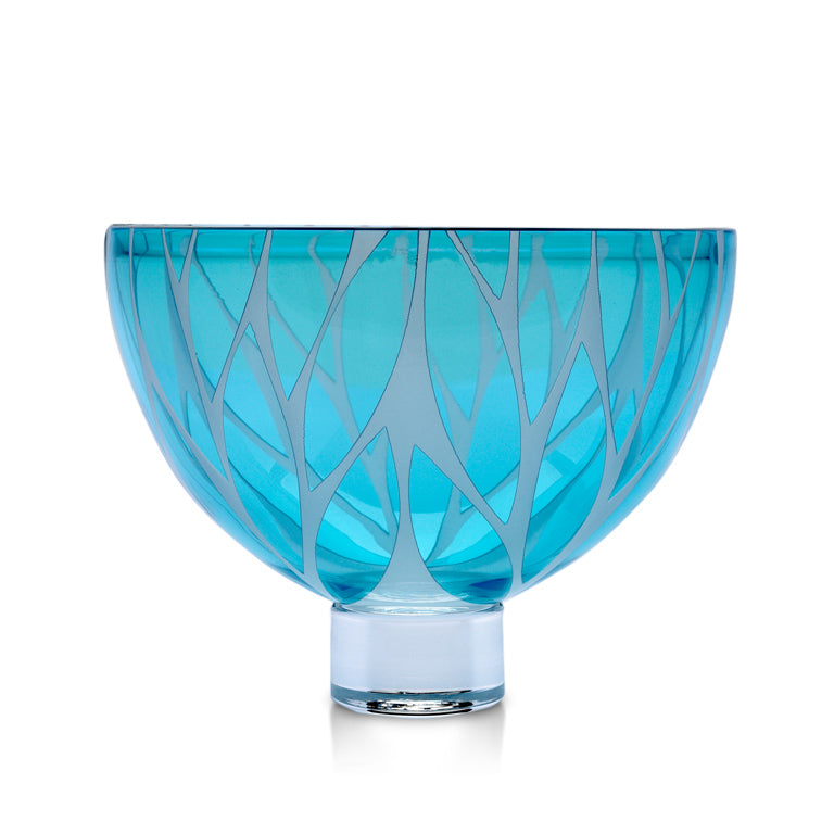 This engraved bowl is inspired by nature’s elemental beauty, the repetition of a single leaf gives this bowl a strong vivid design. Expertly hand-blown by glassmaker Stephen Gillies, the design is engraved by Kate Jones.