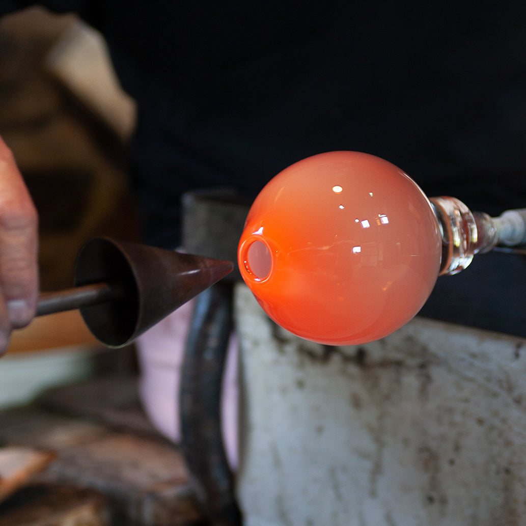 The blown glass ball has a small hole of approx 1.5cm diameter in the top to hold a single statement bloom or a simple bunch of fresh flowers gathered from the garden.