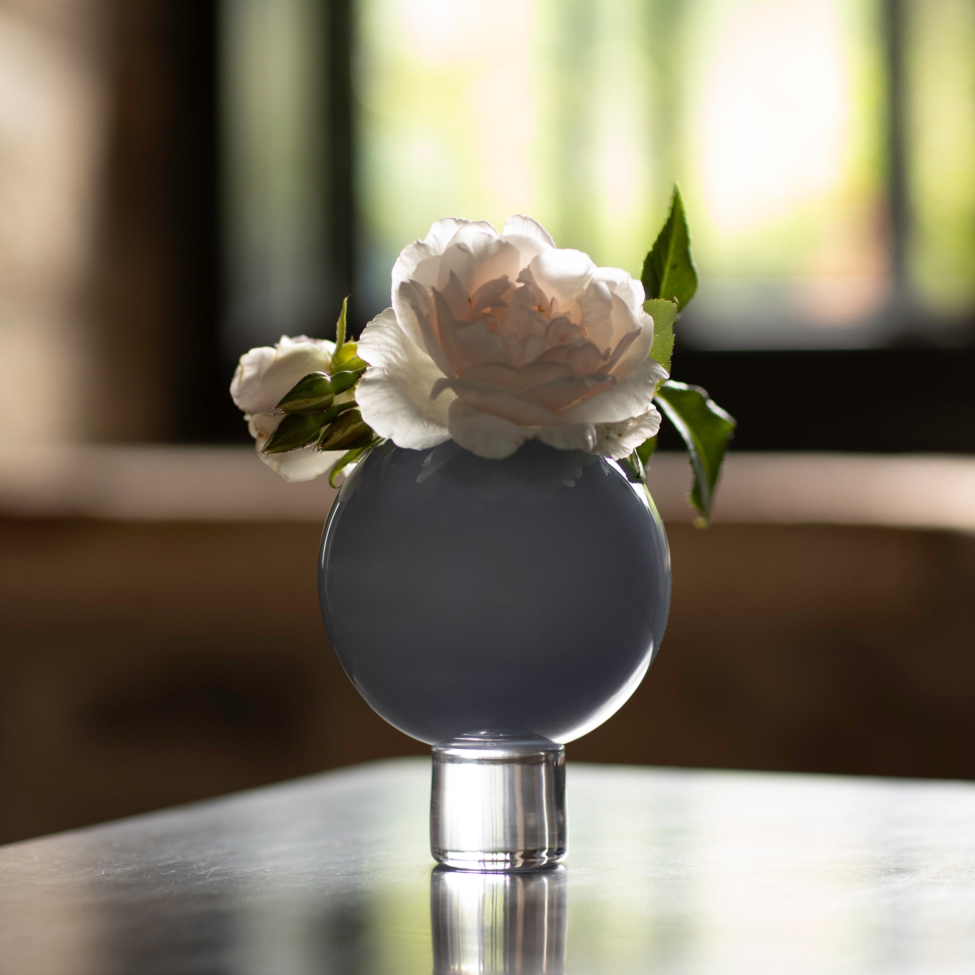 A single bloom or a small posey of flowers looks wonderful against the grey glass of our small ball vase.